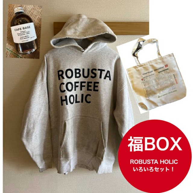送料無料【福袋】8coffeeオリジナル ROBUSTA COFFEE HOLIC ビッグシルエットプルオーバー パーカー(裏起毛)XLサイズ・ アッシュ と 激レア!『ロブスタカッピングシート』プリント帆布トート と トイさんのロブスタ100%カフェベース250ml *1/5以降発送