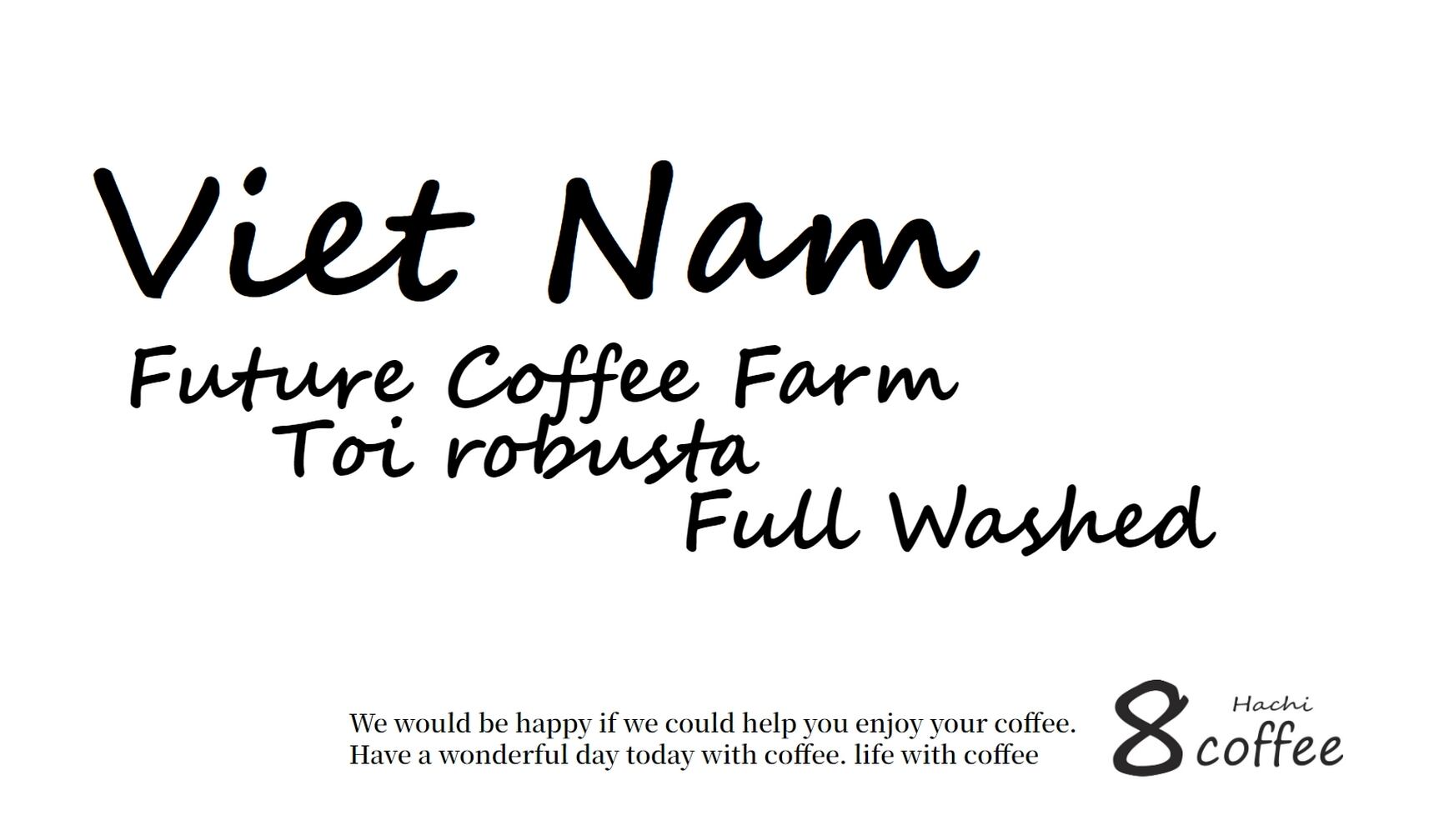 ベトナムのFuture Coffee Farmからお届けする「Toiさんのロブスタ」は、フルウォッシュド製法で丁寧に処理された高品質のロブスタコーヒーです。中深煎りのシティローストにより、豊かな風味と深いコクが引き出されています。最高の一杯を楽しむことができます。